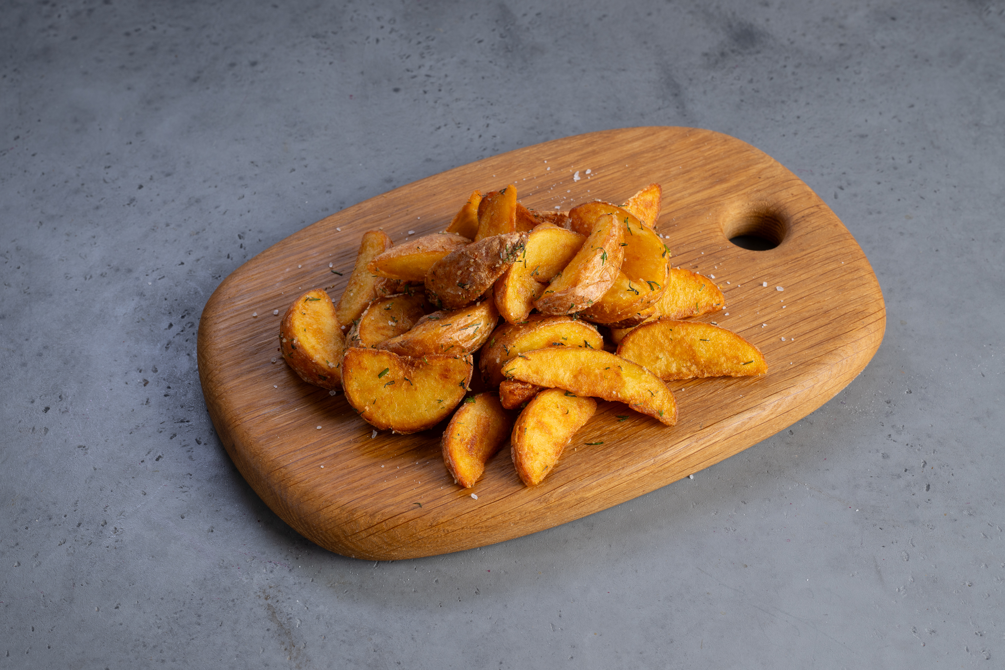 Ищете идеальный гарнир? Предлагаем вам попробовать наше блюдо из категории гарниры — ароматный картофель по-деревенски, приготовленный с любовью. Золотистые ломтики картошки, обжаренные до хрустящей корочки, сдобрены солью и чесночным маслом, а свежий укроп придаёт вкусу особую пикантность.
