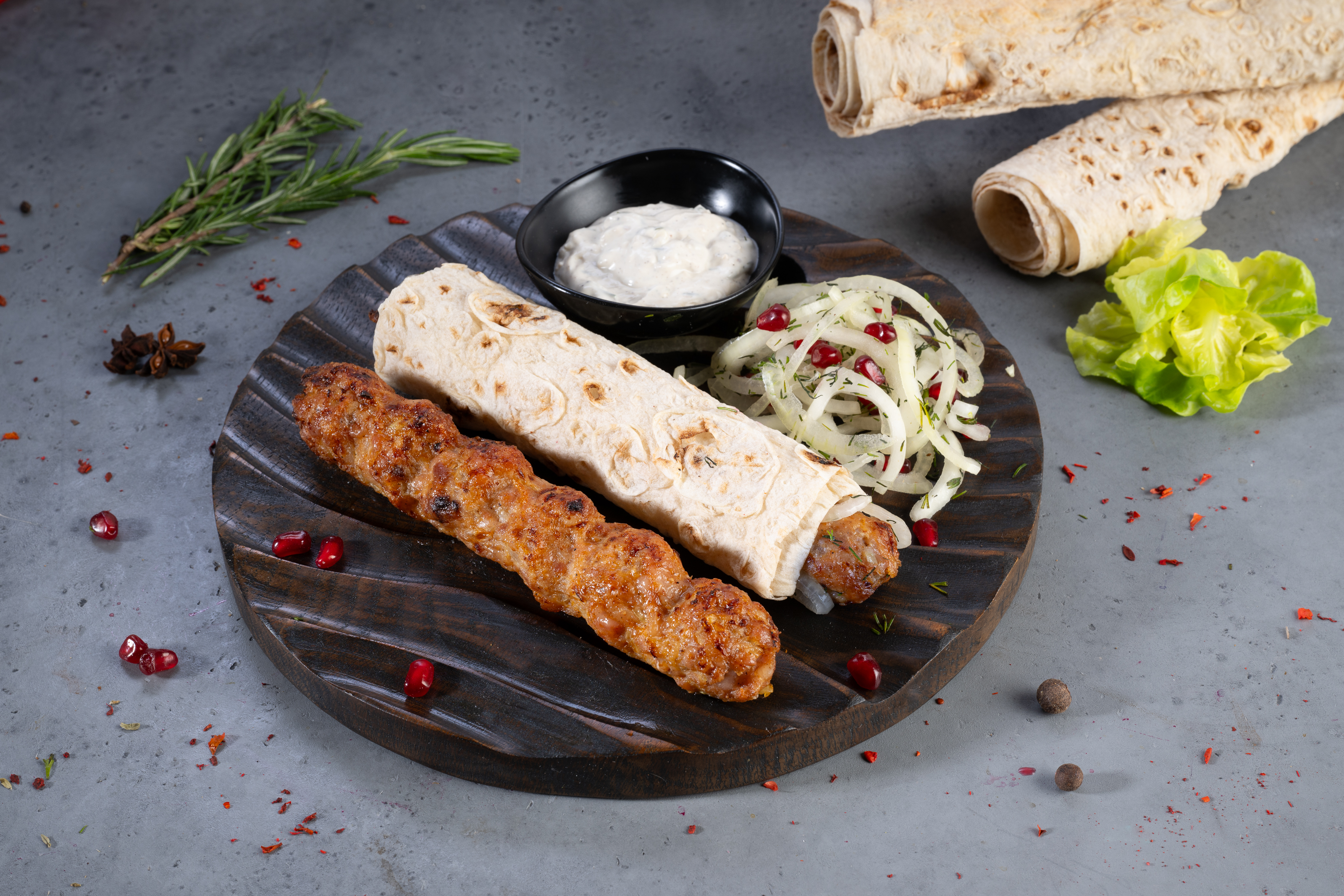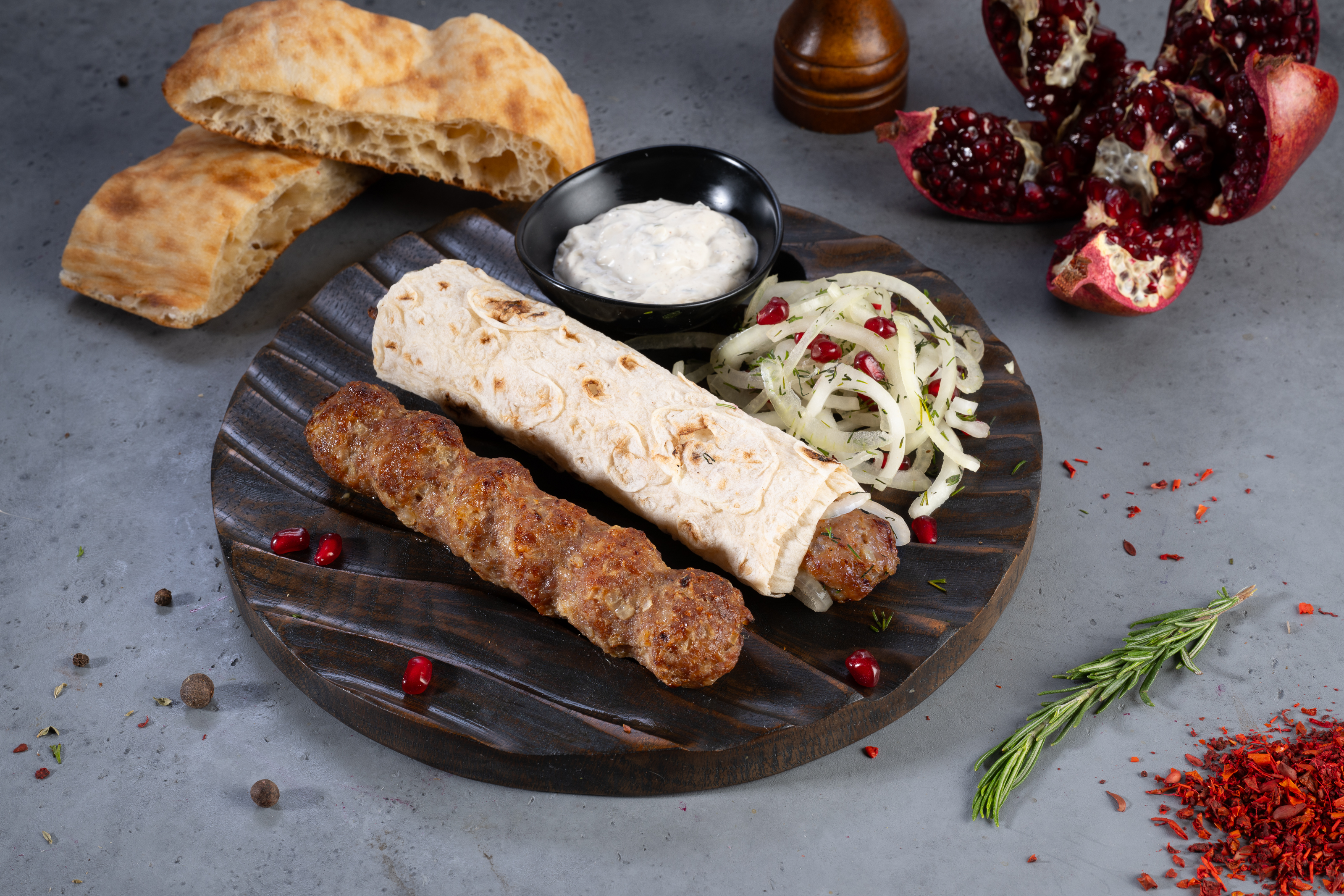 Люля-кебаб из баранины в тандыре — сытное и ароматное блюдо. Сочные колбаски из баранины подаются с армянским лавашом, луком и зёрнами граната